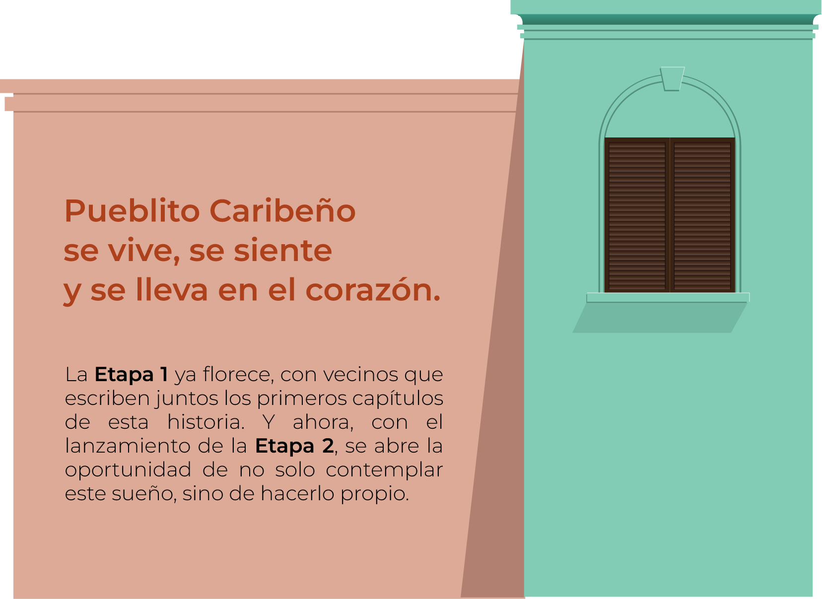 El aire cálido del Caribe acaricia las calles adoquinadas, mientras las fachadas coloridas parecen contar historias al pasar. En cada esquina se escucha el eco de guitarras, las risas de los niños, el murmullo de los vecinos que ya han hecho de este lugar su hogar. Así late Pueblito Caribeño, un proyecto nacido con alma, inspirado en las zonas coloniales más bellas de nuestro Caribe y pensado para quienes sueñan con vivir rodeados de tradición, alegría y modernidad.